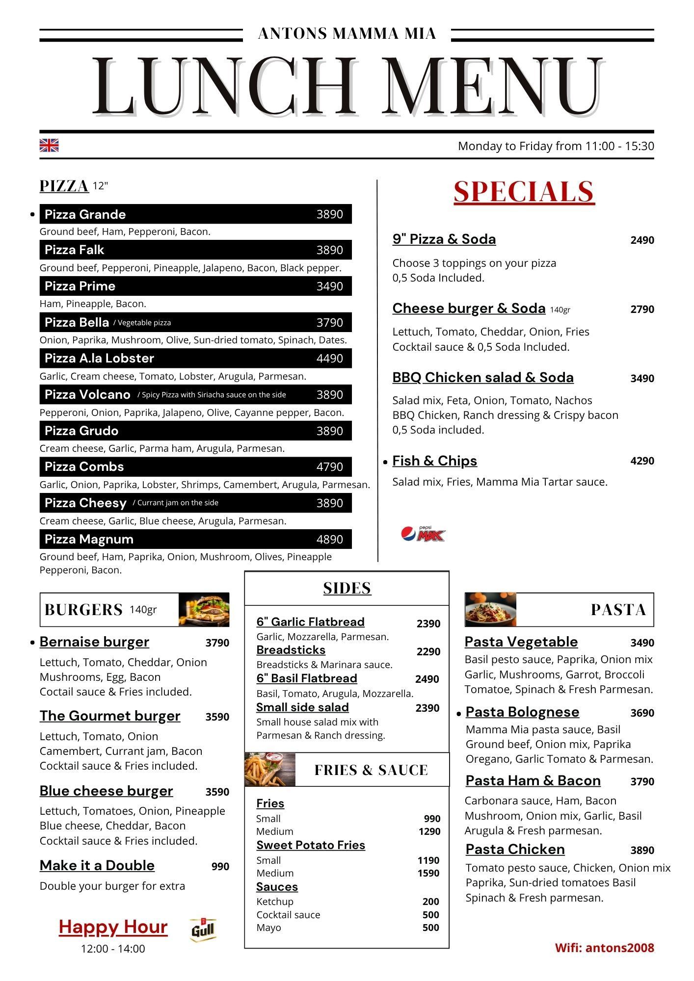 Monday to Fridays from 11:30 - 15:30